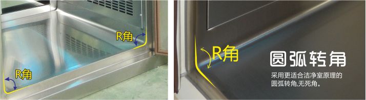 3、采用层流设计,气流流向采用上送下回模式,底部采用304不锈钢冷轧板冲孔设计,并设置加强筋;
