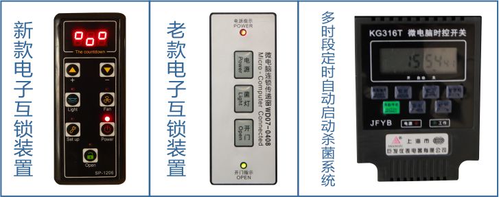 7、控制功能:风机启动/停止按钮,配置内置式电子门互锁;设置紫外灯,设计单独开关,当两扇门关上时,紫外灯应出于开启状态;设置照明灯,设计单独的开关;