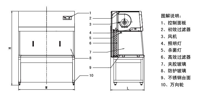 17.电器控制:控制面板上有紫外线灯,照灯,风机调速控制软触点开关;