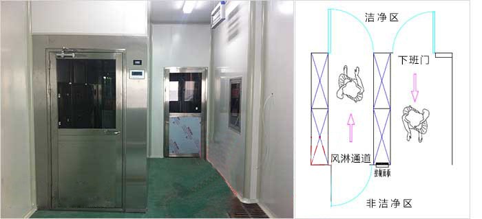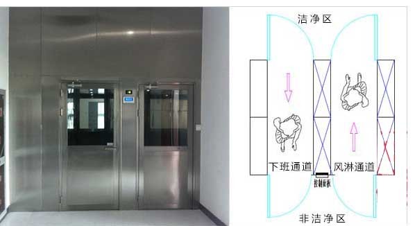 风淋室(又名空气浴尘室、风淋房、风淋门、空气吹淋室、AIR SHOWER,风淋设备,风淋机之类)是人员进出无尘室所必需的通道,并同时起到气闸室密闭无尘室的缓冲作用,是进行人员除尘和防止室外空气污染无尘室的有效设备,也是目前净化车间人员通的必需设备。