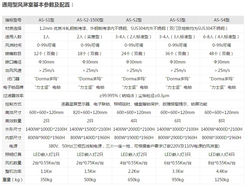 AS-S3型三人标准型双吹风淋室基本配置及说明: