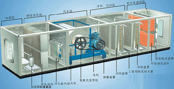 净化机组功能段的设置要根据生产工艺或洁净室要求确定,这是基本原则。净化机组功能段的合并及取舍要与空调房的设计紧密结合起来。