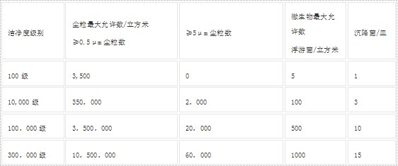 空气洁净度等级洁净室(区)空气洁净级别表:
