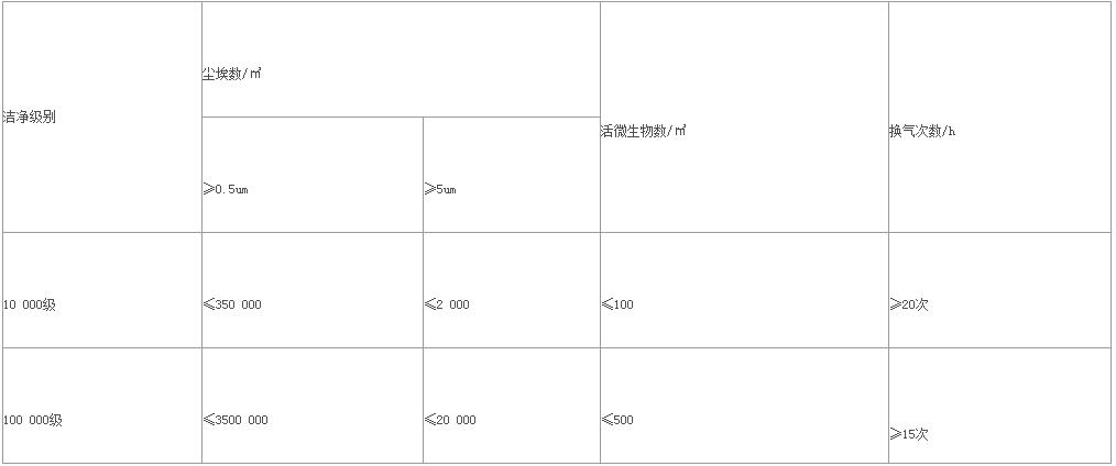 2、按照生产工艺和卫生、质量要求,划分洁净级别,具体级别及要求: